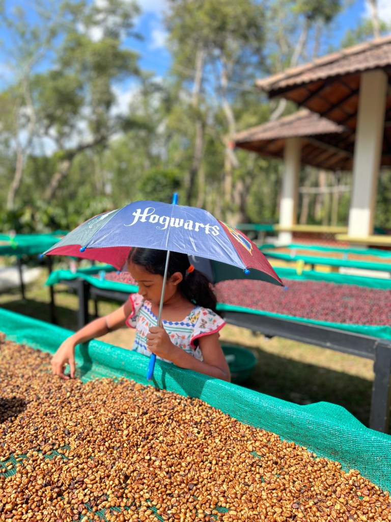 We wanted our name to convey a little more about us, our location, our ecosystem and what’s important to us. Our 50-acre farm shares a boundary with the Devamachi reserve forest, a part of the Nagarhole Tiger Reserve (Incidentally, one of the Arabica x Robusta hybrids developed a few years ago was named Devamachi after this forest) and we have the majestic pachyderms (elephants) frequently visiting the farm. So we decided to name ourselves Anai Kadu which reflects the forest we’re adjacent to, and also our favourite animals the Anai that are frequent visitors. The farm’s name also has the name of the tiny human of Anai Kadu – Anaika in it.